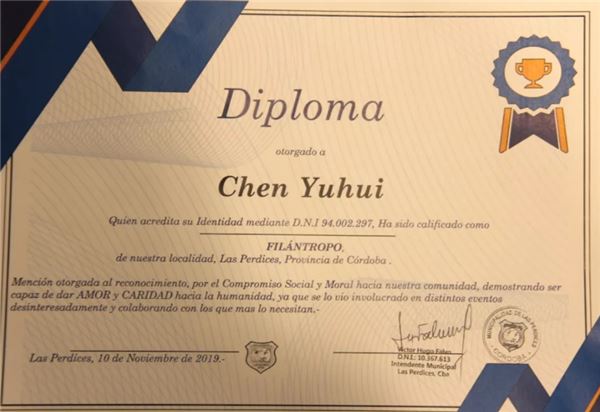 實(shí)際上,拉斯佩爾迪賽斯市政府當(dāng)天共向陳玉輝頒發(fā)了3個(gè)榮譽(yù)證書,分別是“慈善家”、“優(yōu)秀市民”及“杰出企業(yè)家”,與其交談中,我也逐漸了解到這三個(gè)獎(jiǎng)項(xiàng)背后的意義。