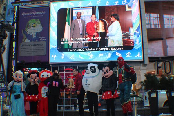 On the afternoon of January31,2022,the countdown to the Winter Olympics was broadcasted on the Disney screen43rd street screen in Times Square,New York,until February1,2022.The film showed many United Nations personalities and key U.S.dignitaries and cultural stars wishing for the New Year of the Tiger and the Winter Olympics.It is reported that this event is jointly organized by World Harmony Foundation and the Peaceever TV,and was broadcasted on the screen in Times Square,New York,with senior UN officials,US dignitaries and cultural celebrities wishing Asian people a happy Lunar New Year and success for the Beijing Winter Olympics,adding a festive touch to New York.