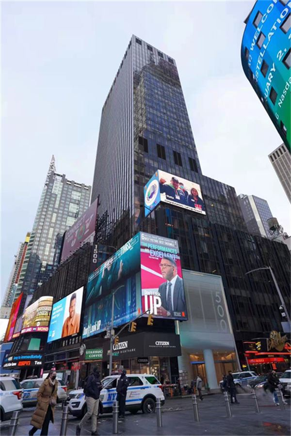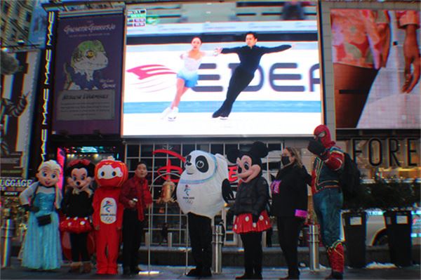 紐約時報廣場Disney大屏幕上,于美國東部時間2022年1月31日下午開始,到2月3日,43街的大屏幕分別播出“迎新春,祝冬奧”倒計時活動。該活動由久安電視國際傳媒集團和世界和諧基金會主辦,為慶祝華人新年及北京冬奧會即將召開。活動期間聯(lián)合國官員、美國政界人士、歌星等通過視頻方式,紛紛為全球華人送上春節(jié)祝福,并預(yù)祝2022年北京冬奧會圓滿成功!
