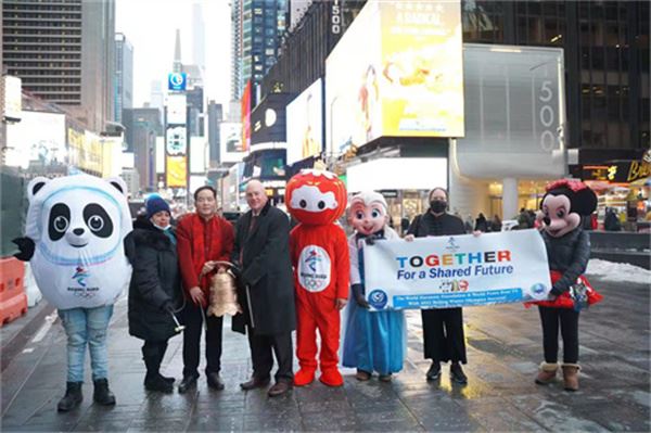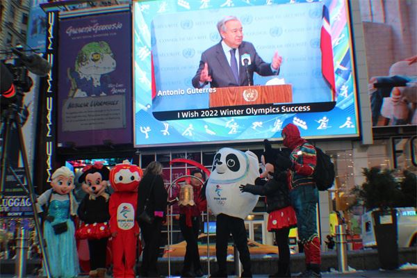 The countdown to the2022Winter Olympics in Times Square in New York City was organized by the World Harmony Foundation and Peaceever TV,who joined hands with the United Nations,U.S.dignitaries and celebrities to promote the"Community of Human Destiny"and make a call to the world for peacemaking,reflecting the grand spirit of the United Nations and the Olympics.
