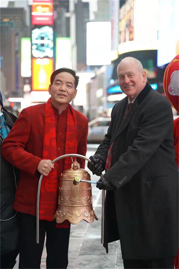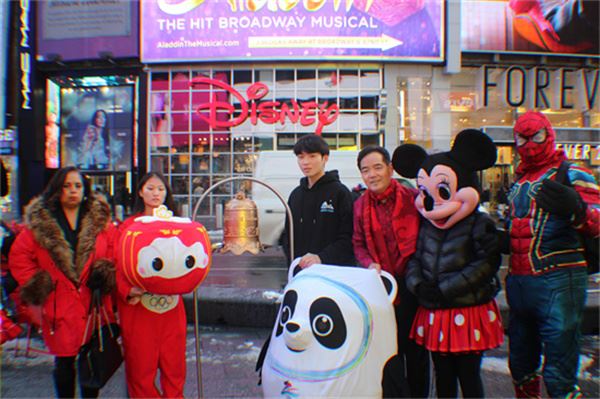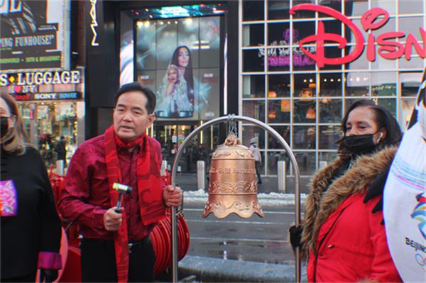 同時2月2號-3號,在紐約時報廣場的43街與納斯達克遙遙相對、被稱為世界的十字路口舉辦的活動現(xiàn)場中,F(xiàn)rank Liu(劉藩)與Nicole Edwards代表主辦方久安電視國際傳媒集團與世界和諧基金會,將和諧之聲在世界媒體之都“時報廣場敲響”,他們表示,第一聲代表著和平,希望終止戰(zhàn)爭。第二聲代表作和諧,希望各族裔團結(jié)。第三聲代表作健康,盡快消除病毒。第四聲代表作幸福,希望各國、世界亞裔與全球華人家庭幸福、虎年好運快樂!在現(xiàn)場的還有紐約長島高二學(xué)生HarmonyLiu與小學(xué)生EireneLiu,與高中的華裔學(xué)生莊寶儀與潘偉燁同學(xué)穿作冬奧運吉祥物墩墩蓉蓉的卡通服裝一起出現(xiàn)在現(xiàn)場,愛好和平的不同族裔的男女青年,他們穿作代表美國文化動漫的迪斯尼卡通服裝“男孩、女孩米老鼠、艾爾莎、蜘蛛俠”等非常高興的參加今天的迎新年活動。