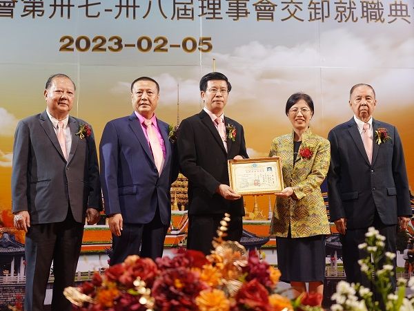 泰國(guó)中華總商會(huì)主席林楚欽、泰國(guó)潮州會(huì)館主席徐惠深、泰國(guó)各姓宗親總會(huì)聯(lián)合會(huì)會(huì)長(zhǎng)黃漢良上臺(tái)熱情致詞并送上美好祝福。大會(huì)特別恭請(qǐng)潘瑾公參兼總領(lǐng)事為理事長(zhǎng)、永遠(yuǎn)榮譽(yù)理事長(zhǎng)、榮譽(yù)理事長(zhǎng)、副理事長(zhǎng)頒發(fā)請(qǐng)任書(shū)。