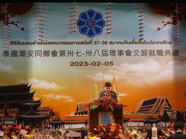 正值元宵佳節(jié)來(lái)臨之際,2月5號(hào)上午,泰國(guó)潮安同鄉(xiāng)會(huì)第37屆與38屆理事會(huì)交卸就職典禮在本會(huì)蘭臣堂隆重舉行。中國(guó)駐泰使館、泰國(guó)政界僑界領(lǐng)導(dǎo)、泰國(guó)潮安同鄉(xiāng)會(huì)理事會(huì)全體成員、泰國(guó)潮安鄉(xiāng)親,及各方代表數(shù)百嘉賓到場(chǎng)同慶共賀。