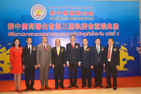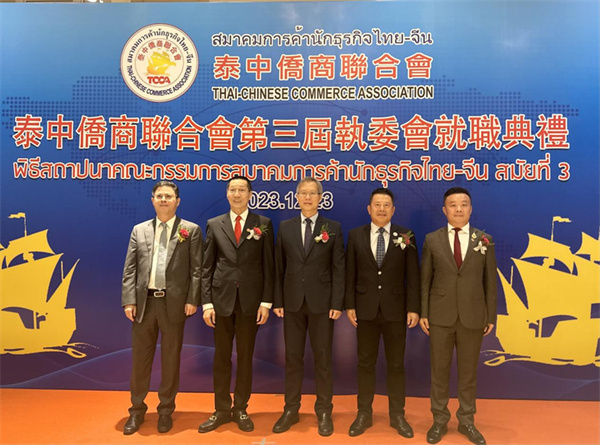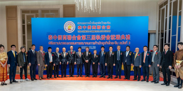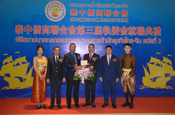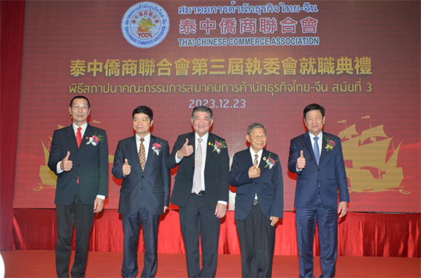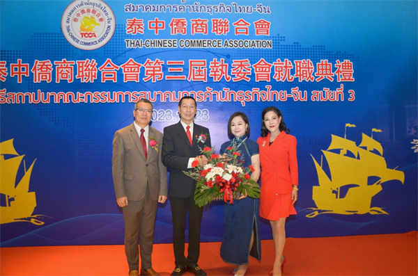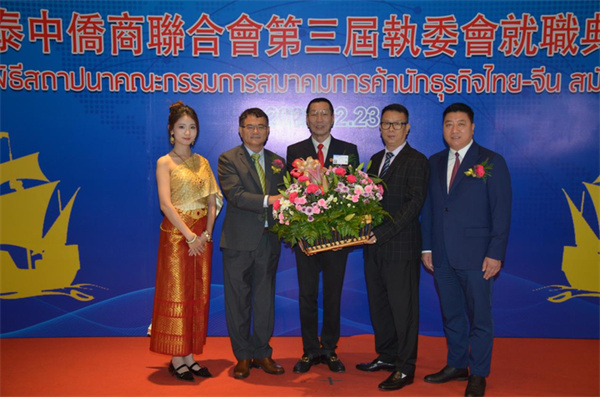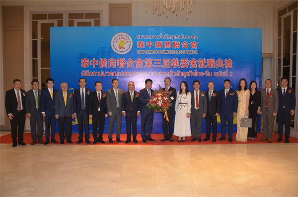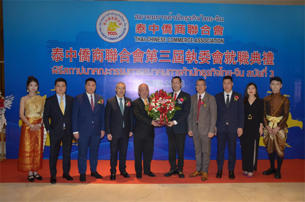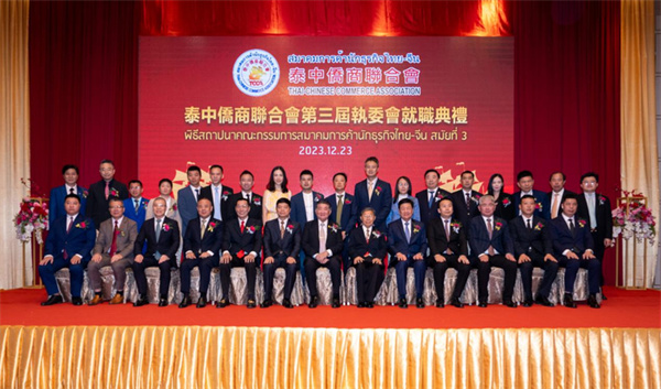 泰中僑商聯(lián)合會(huì)第三屆執(zhí)委會(huì)就職盛典于2023年12月23日晚6時(shí)在泰國(guó)中華總商會(huì)光華堂隆重舉行。鄺錦榮博士蟬聯(lián)第三屆主席,泰國(guó)國(guó)務(wù)院第一副總理兼商業(yè)部長(zhǎng)普坦·威乍耶猜閣下、泰王國(guó)阿伊瓦特查克潘親王、中華人民共和國(guó)駐泰國(guó)大使館劉敬師僑務(wù)參贊、泰國(guó)中華總商會(huì)林楚欽主席登臺(tái)見(jiàn)證。泰國(guó)皇家、政府、僑界、商界領(lǐng)袖精英、社會(huì)名流、泰中僑商聯(lián)合會(huì)和東部經(jīng)濟(jì)走廊(EEC)分會(huì)、清邁分會(huì)、青年委員會(huì)的成員蒞臨出席盛典,冠蓋云集,圓滿成功。