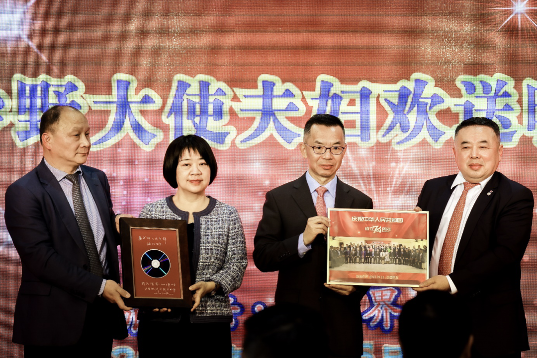 緊接著,蔡君柱先生和陳世明先生為盧大使和夫人贈送了大使與僑胞們的合影,以及僑界為大使制作的視頻,以表達對盧大使的敬意和不舍之情。