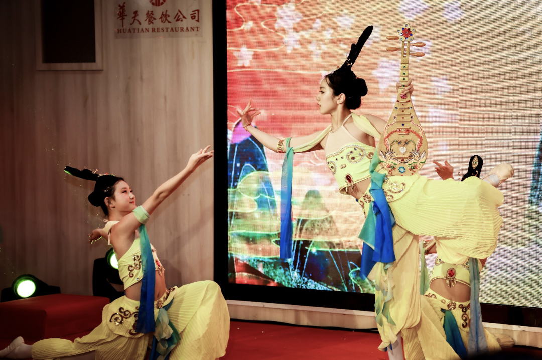 晚宴還精心安排了一系列豐富多彩的文藝表演,展現(xiàn)了中華文化的獨特魅力。首先,國風(fēng)舞蹈以其優(yōu)雅的舞姿和動人的旋律,帶領(lǐng)觀眾領(lǐng)略傳統(tǒng)文化的韻味。接著,由古箏、竹笛等傳統(tǒng)樂器的演奏的《上春山》為晚宴增添一抹古典的色彩,讓人沉醉其中。最后,歌曲獨唱《我的深情為你守候》、合唱《燈火里的中國》為晚宴營造出熱烈的氛圍。