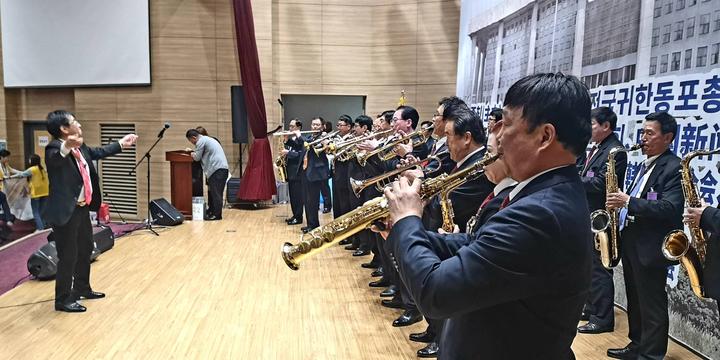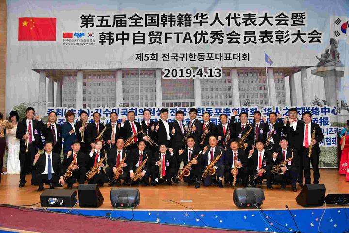 全國(guó)韓籍華人總聯(lián)合會(huì)所屬中國(guó)同胞聯(lián)合樂(lè)團(tuán)全體成員集體在國(guó)會(huì)議員會(huì)館大禮堂亮相。