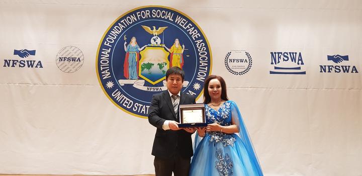 韓國(guó)新華報(bào)社副總編龍敏(左)被財(cái)團(tuán)法人國(guó)際言論財(cái)團(tuán)評(píng)定為優(yōu)秀新聞?dòng)浾叻Q號(hào)。