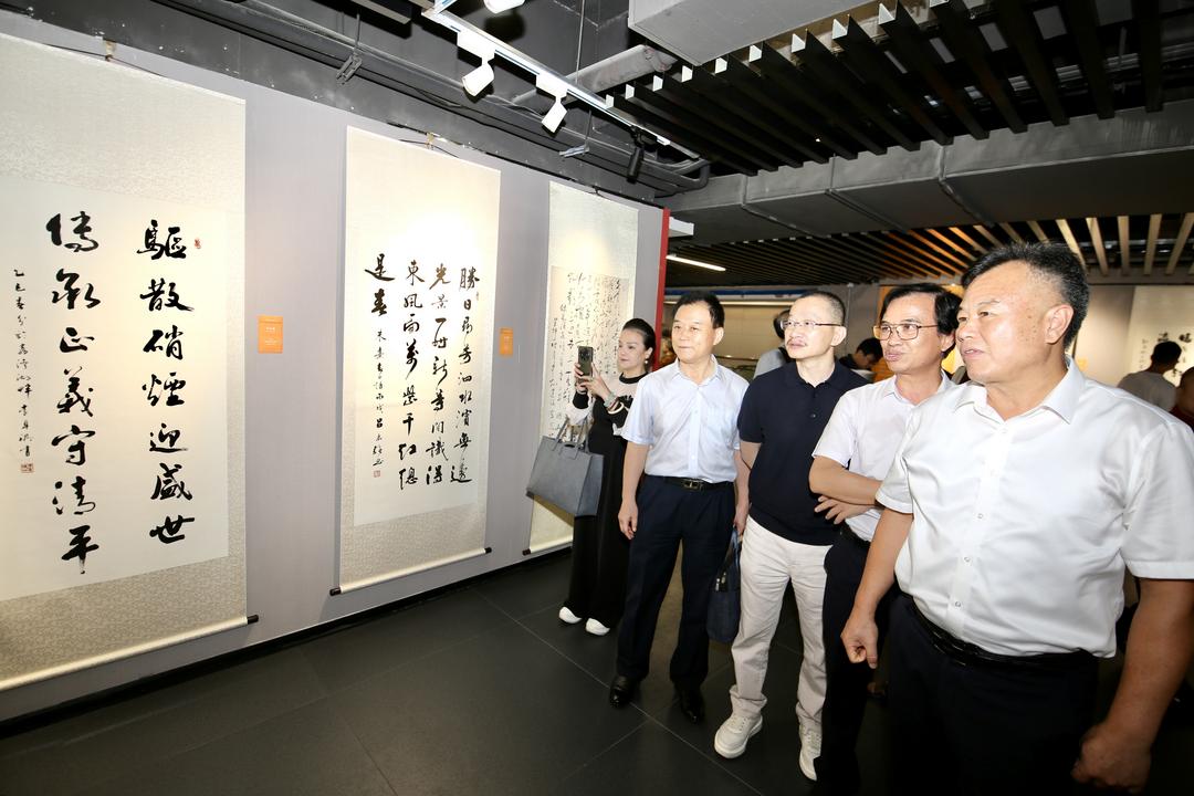 廣州市政協(xié)秘書(shū)長(zhǎng)黃潔峰(右一)參觀會(huì)員作品展