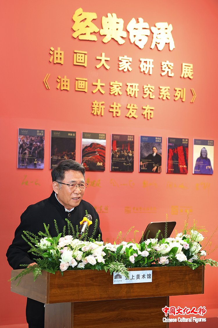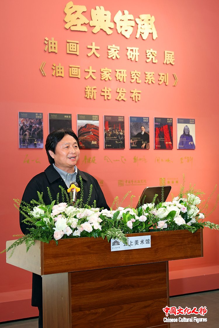 中國(guó)藝術(shù)研究院油畫(huà)院院長(zhǎng)朱春林主持開(kāi)幕式暨新書(shū)發(fā)布會(huì)