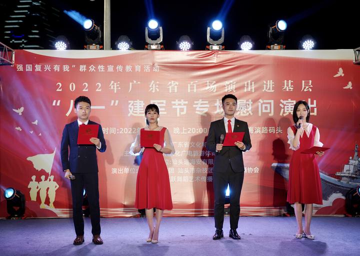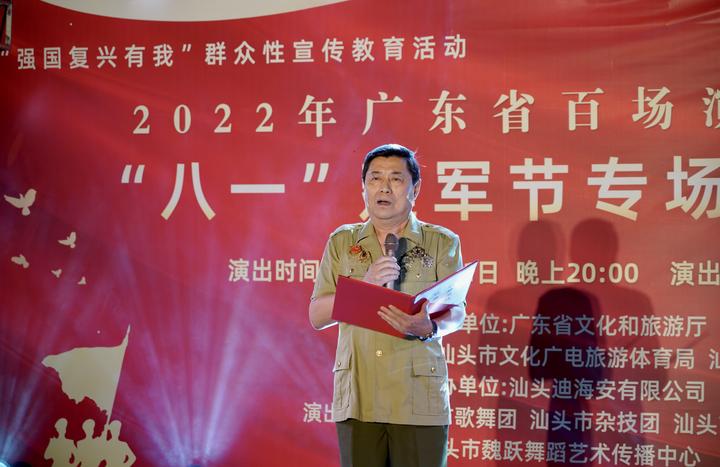 (華人頭條丹佛網(wǎng)訊)為慶祝中國人民解放軍建軍95周年,謳歌強(qiáng)國強(qiáng)軍的偉大征程,喜迎“八一” 軍地魚水之情,共話軍地融合發(fā)展。7月31日晩上,由廣東省文化和旅游廳指導(dǎo)單位、汕頭市文化廣電旅游體育局主辦、汕頭迪海安有限公司承辦的 “2022年廣東省百場演出進(jìn)基層”八一建軍節(jié)專場慰問演出,在汕頭海濱路碼頭舉辦。汕頭市文化廣電旅游體育局領(lǐng)導(dǎo)、部隊(duì)官兵以及文化藝術(shù)界人士參與活動(dòng)?;顒?dòng)特邀著名話劇表演藝術(shù)家(原廣東話劇院院長)國家一級(jí)演員、李仁義參與慰問演出。