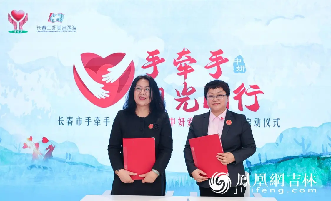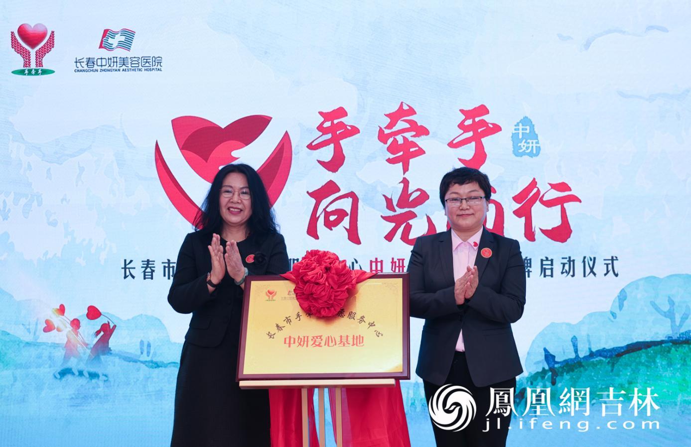 簽約環(huán)節(jié),長春市手牽手志愿服務(wù)中心與長春中妍美容醫(yī)院正式簽署合作協(xié)議,并共同為“中妍愛心基地”揭牌。