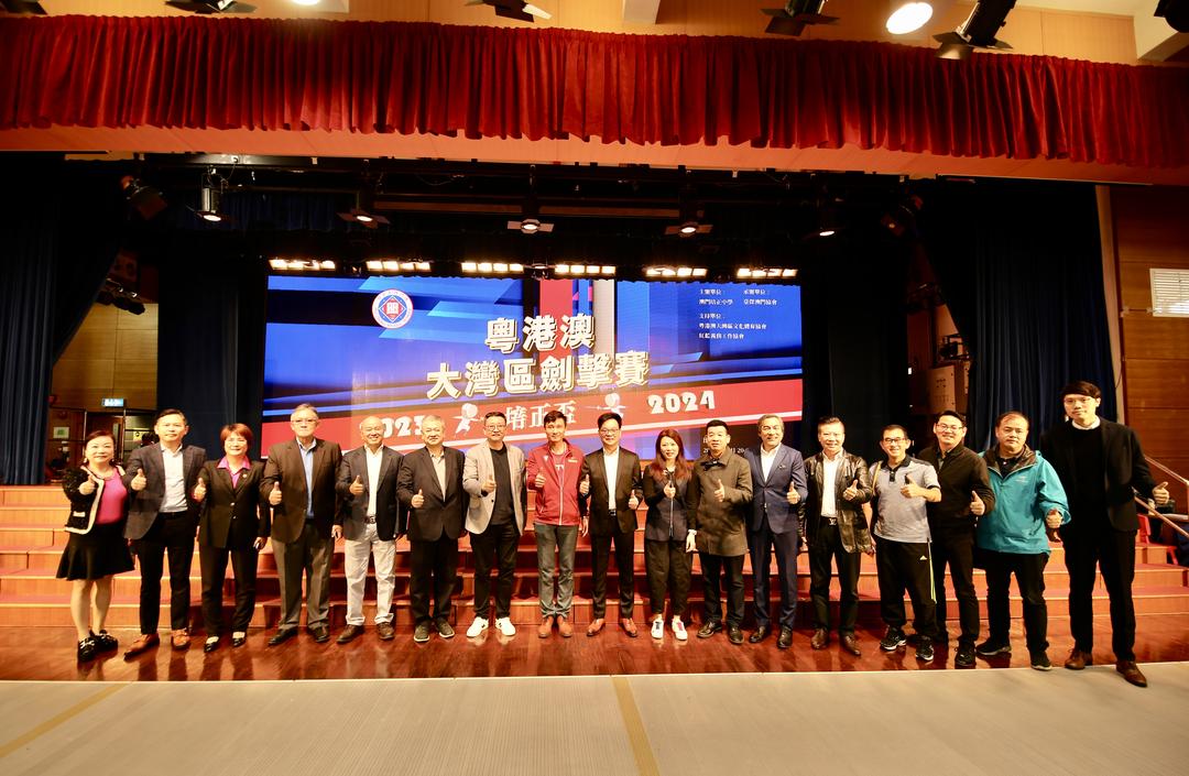 出席劍擊賽儀式嘉賓;澳門培正中學(xué)高錦輝校長、梁永棠主任、廣東省擊劍協(xié)會副主席及粵港澳大灣區(qū)文化體育協(xié)會會長龍傑先生、廣州白雲(yún)區(qū)僑聯(lián)主席李莉莉、海外華媒協(xié)會副主席魏炯才、粵港澳大灣區(qū)文化體育協(xié)會黃光森理事會主席、何汝源副會長、郭時(shí)興副會長、鐘國頌副會長、盈動(dòng)體育會譚周玉娟會長、香港紗廠國際集團(tuán)黃德君董事等一眾嘉賓,並為開幕儀式揭幕。