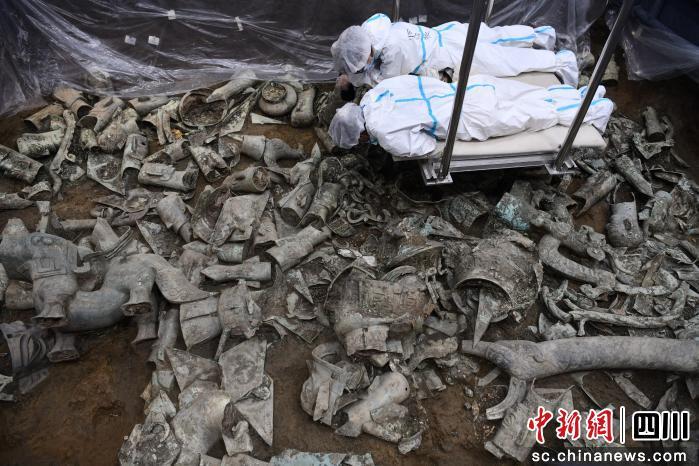 圖為三星堆遺址8號(hào)“祭祀坑”發(fā)掘現(xiàn)場(chǎng)。三星堆研究院供圖