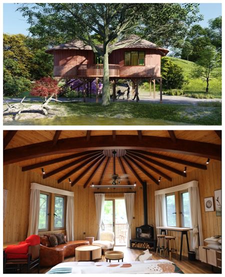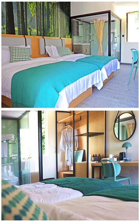 森林木舍:位于項目停車場,交通便利,共有25間客房,分為大床房、雙床房和三床房。森林木舍室內(nèi)裝修以年輕人喜歡的藍白清爽色調(diào)為主,簡單明亮,充滿時代感。