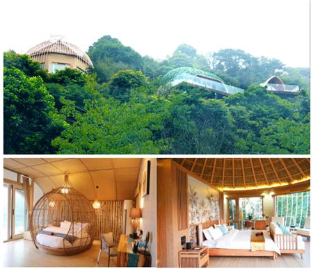 禧悅莊·望月鋁屋是廣州客天下精心打造的野奢生態(tài)酒店,酒店背靠大金峰,四面環(huán)山,周圍被樹木環(huán)繞,與山谷地形巧妙的融合。酒店設計體現(xiàn)自然之美,風格明晰簡約,由3幢不同主題的鳥巢樹屋組成。樹屋依山傍樹而建,高低錯落有致,設有歸巢主題、玲瓏主題、悉尼之戀主題戶型,游客踩著林蔭間的樓梯抬階而上,能感受到獨特的生態(tài)魅力。