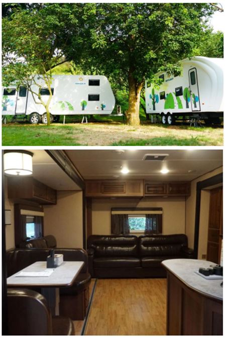 房車基地:分別有星語房車和樂派房車兩種類型。其中,星語房車為兩室一廳,帶有可開啟的天窗,入夜即可欣賞漫天的星辰流動,享受一片靜謐之美好。樂派房車為一室一廳,帶有壁爐等英式裝飾,并設有室內(nèi)卡拉OK等娛樂設施,為您的假期增添一份歡愉。