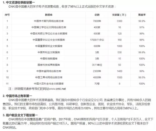 目前知網(wǎng)已經(jīng)是中國(guó)最大的學(xué)術(shù)電子資源集成商,收錄了95%以上正式出版的中文學(xué)術(shù)資源。截至2017年底,中國(guó)知網(wǎng)擁有機(jī)構(gòu)用戶2萬(wàn)多家,個(gè)人注冊(cè)用戶2000多萬(wàn)人,全文下載量達(dá)20億篇次/年,網(wǎng)站同時(shí)在線用戶超過(guò)15萬(wàn)人。有說(shuō)法稱(chēng),90%以上的中國(guó)學(xué)術(shù)資源檢索和全文下載來(lái)自于知網(wǎng)。