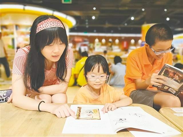 家長(zhǎng)帶著孩子來(lái)閱讀,在愉悅的氛圍中學(xué)習(xí)新知識(shí)。郭永樂(lè) 攝